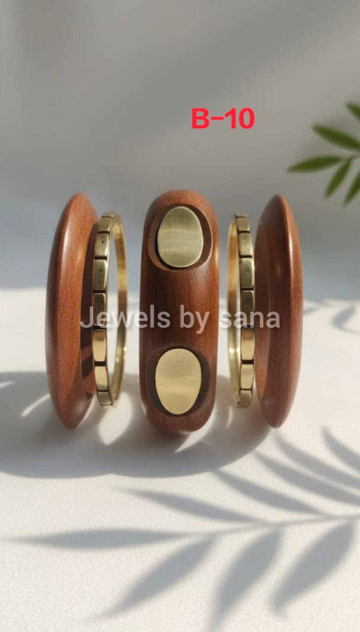 Elevate your style with our Handcrafted Brass and Wood Bangles, a perfect fusion of earthy charm and modern elegance. Each piece is skillfully made by artisans using high-quality brass and natural wood, creating a warm, organic look that complements any outfit. The smooth wooden finish paired with minimal brass detailing gives these bangles a timeless, versatile appeal.
