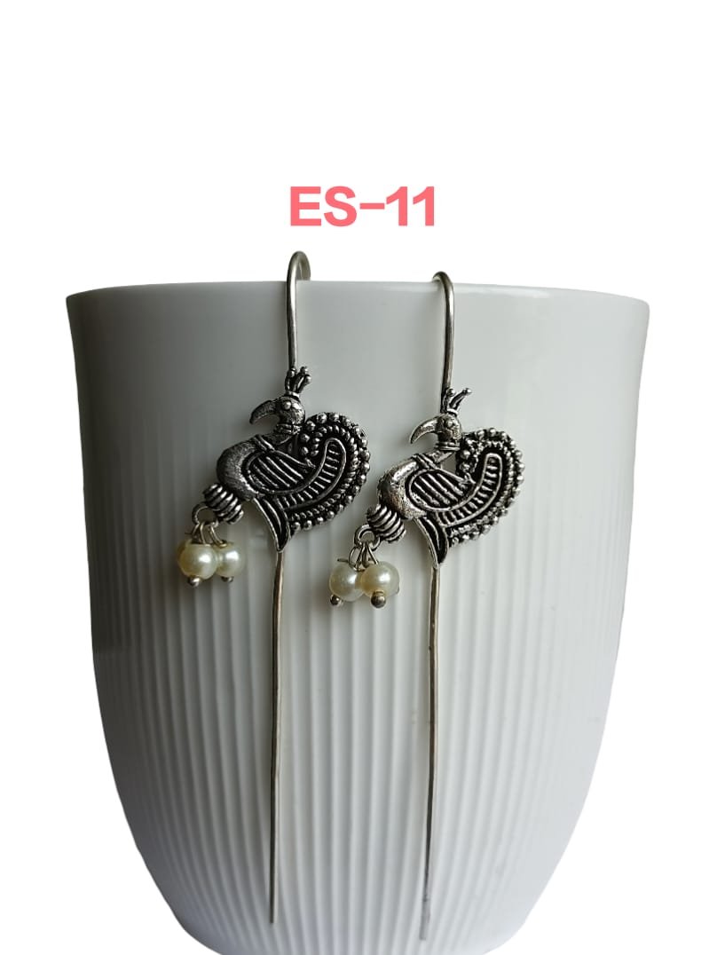 Whether you’re dressing up for a festive celebration, a wedding, or simply wish to add a regal touch to your everyday style, these Peacock and Pearl Dangling Earcuffs (ES-11) are the ideal choice